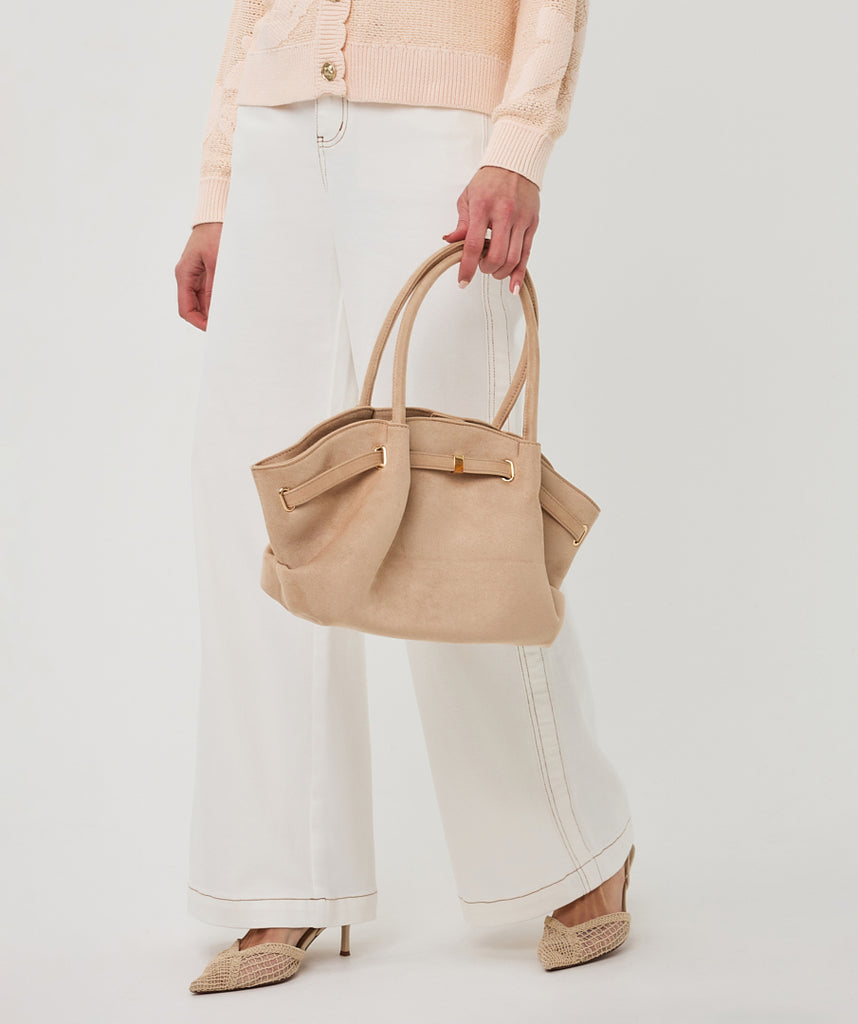 Elevate your everyday style with this luxurious Suedine bag in a warm cappuccino tone from Esqualo. Crafted from soft, velvety suedine fabric, this sophisticated accessory effortlessly transitions from day to night. The rich, neutral shade complements any wardrobe, while the refined design adds an instant touch of elegance to your look. Perfect for those who appreciate quality craftsmanship and timeless fashion, this bag is an investment piece that deserves a place in your collection.