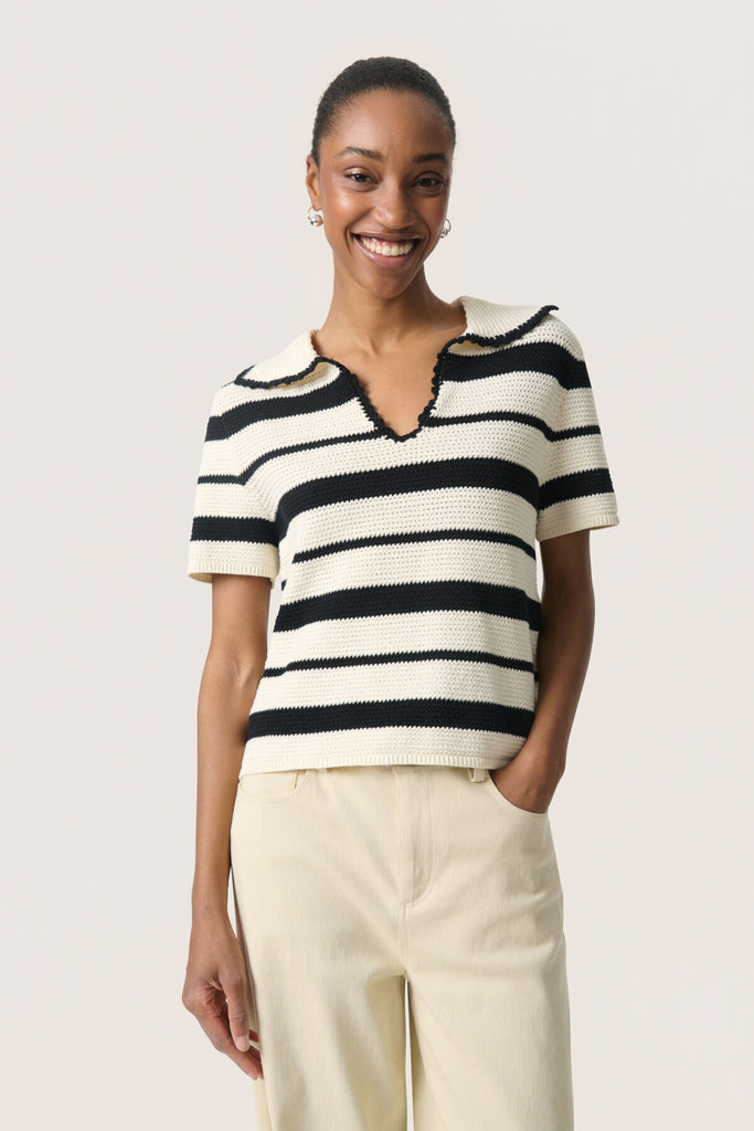 Elevate your everyday look with the SLMadalena Pullover. Featuring a flattering V-neck and short sleeves, its classic striped design brings effortless style and comfort. Lightweight and breathable, this pullover is perfect for layering or wearing on its own, making it a versatile addition to your wardrobe. Embrace a chic, relaxed fit that suits any occasion.