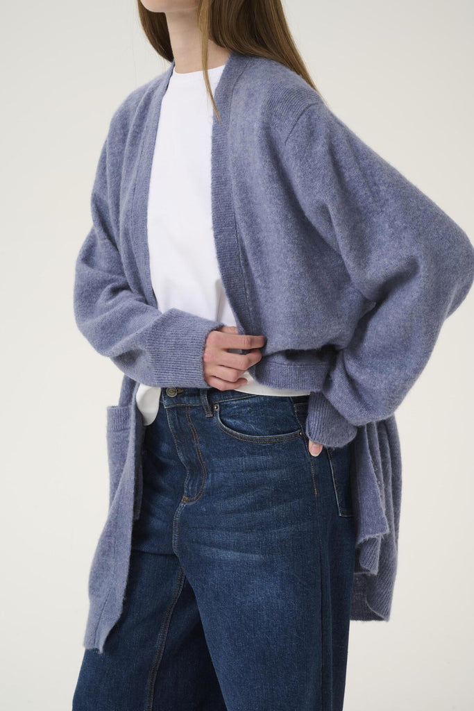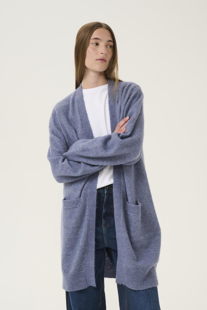 Embrace comfort and style with the GuniIW Cardigan in Wild Wind Blue. This long cardigan offers cozy warmth and a relaxed fit, perfect for layering on cooler days. Its soft blue hue adds a refreshing pop to your wardrobe, bringing both elegance and versatility. Ideal for casual outings or cozy evenings, this cardigan effortlessly elevates any outfit while keeping you comfortably stylish all day long.
