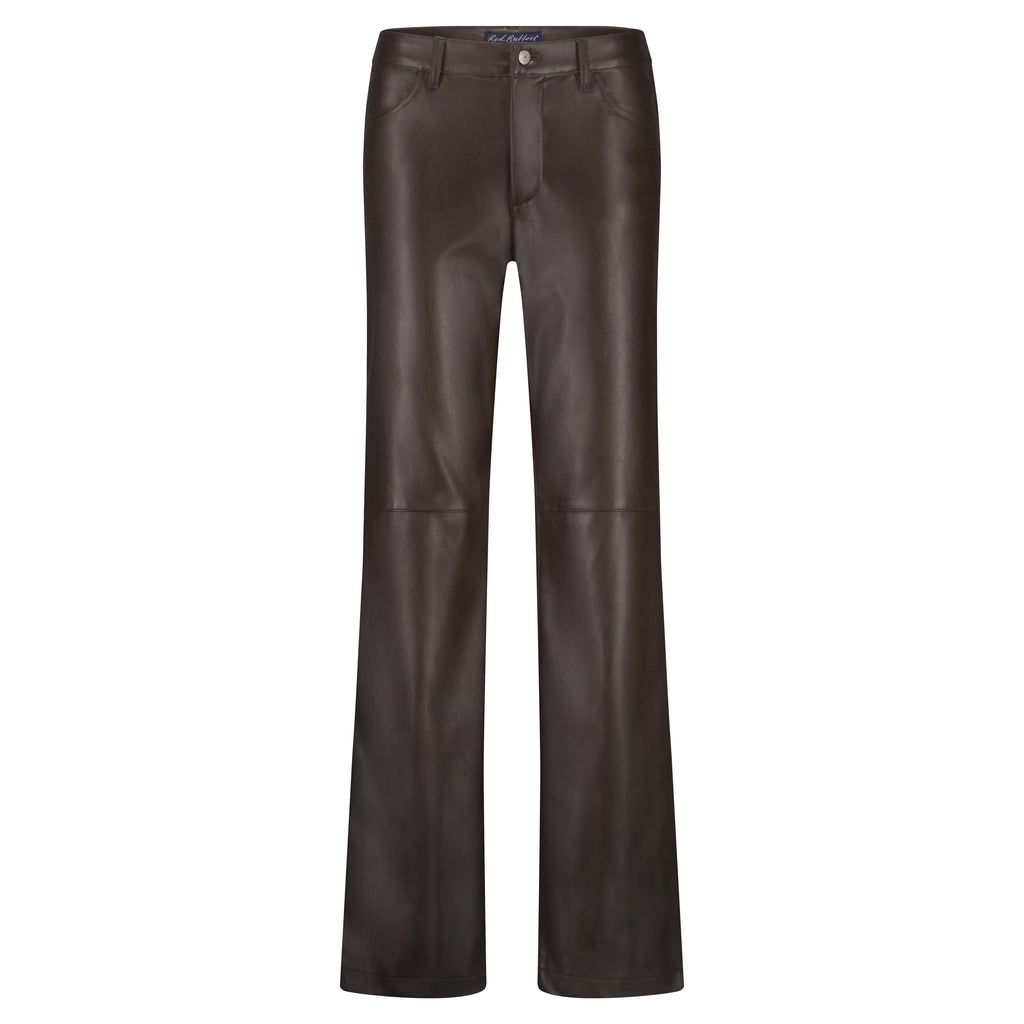 Elevate your style with the SRB4627A Faux Leather Colette Trousers. These high-rise, wide-leg trousers offer a flattering regular fit, combining comfort with contemporary edge. The rich brown faux leather adds a chic, versatile touch to any outfit, perfect for making a confident statement day or night.
