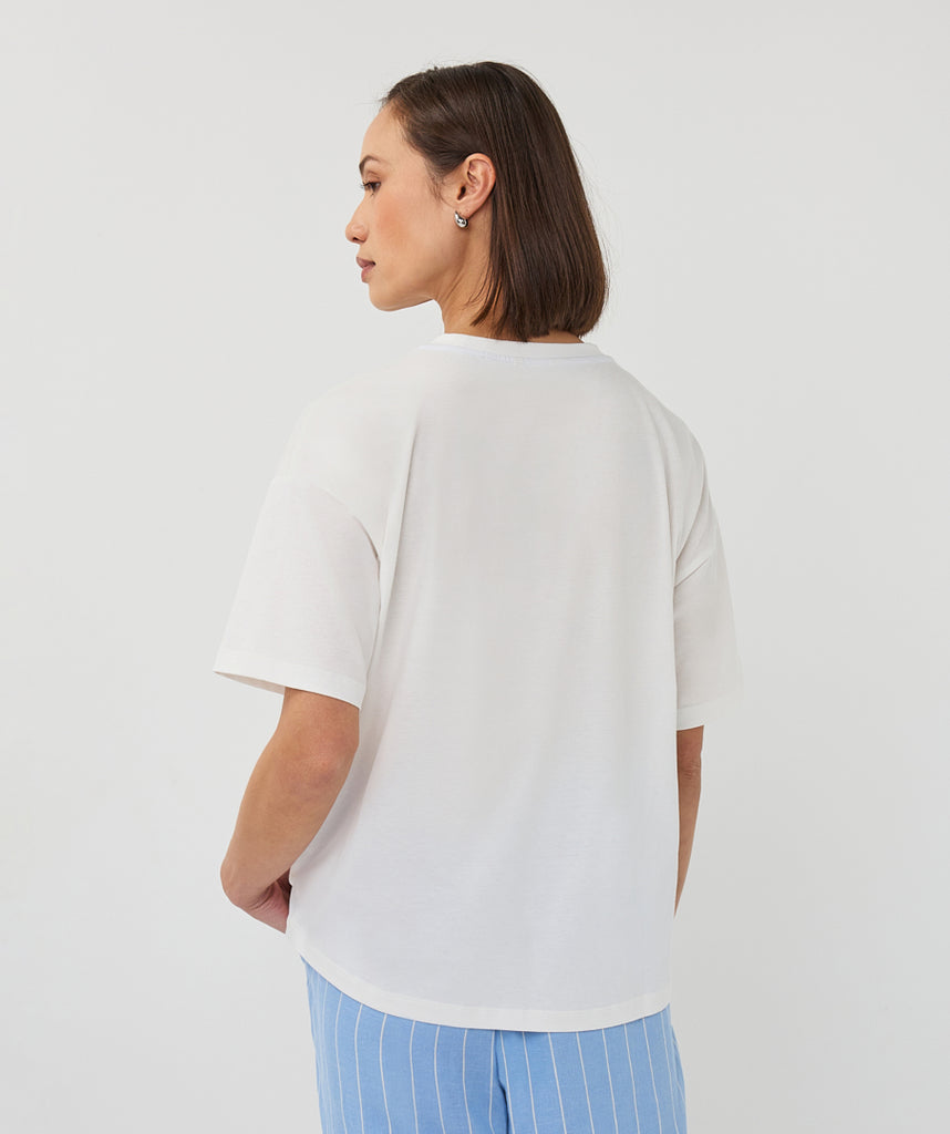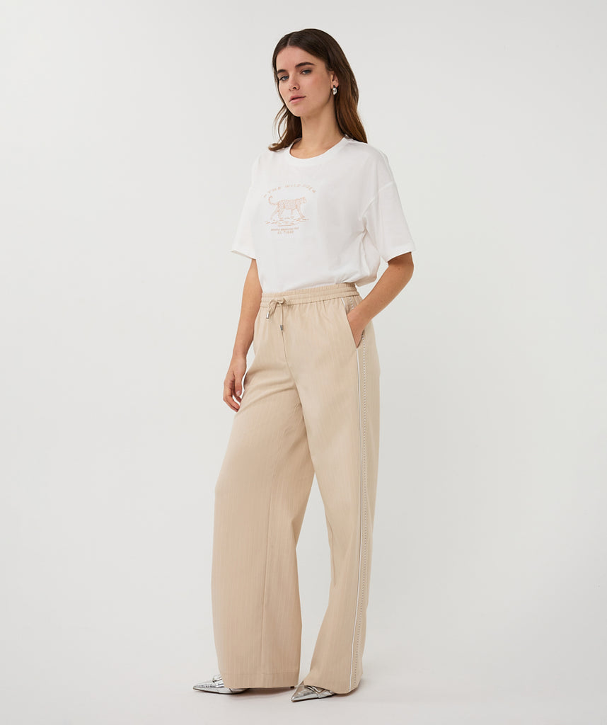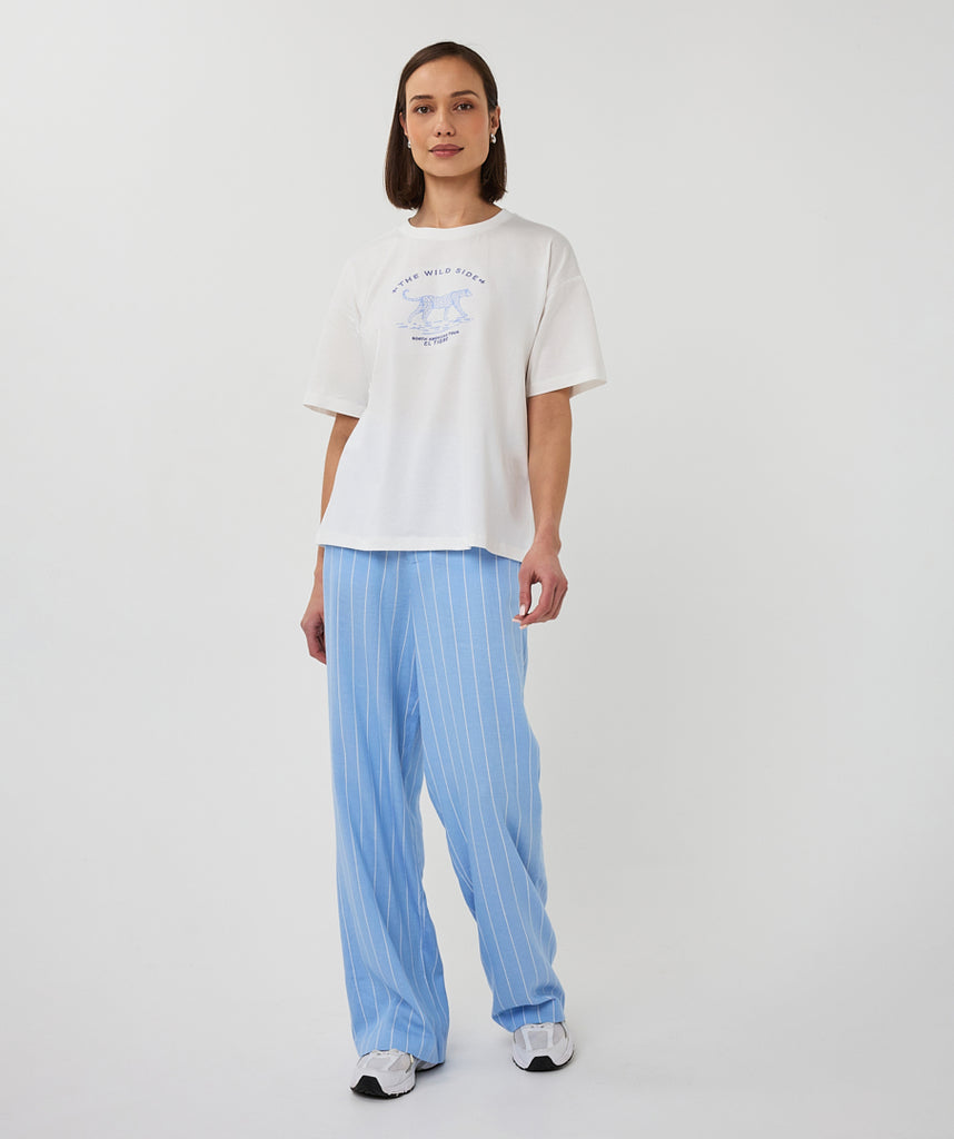 Embrace effortless style with Esqualo's 'Animal' T-shirt, available in versatile Off White and Sand or Off White and Blue. This wardrobe essential combines comfort with contemporary design, featuring a subtle animal motif that adds visual interest without overwhelming your look. Perfect for layering or wearing solo, it transitions seamlessly from casual days to relaxed evenings. The soft fabric and thoughtful colour palette make it an easy choice for building a cohesive, modern wardrobe that works harder for you.