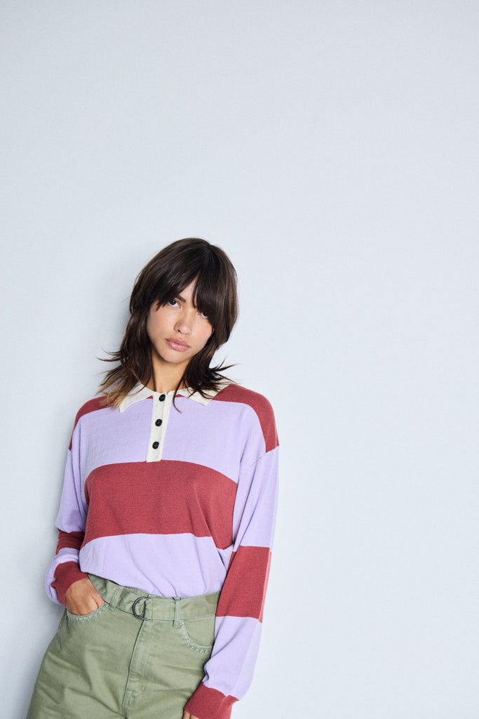 Elevate your casual wardrobe with this timeless striped polo-style pullover. Crafted for comfort and versatility, it effortlessly transitions from weekend relaxation to smart-casual occasions. The classic polo silhouette offers a refined alternative to standard t-shirts, while the subtle striped pattern adds visual interest without overwhelming your look. Choose between sophisticated Blue Comb or elegant Purple Rose Comb to match your personal style. Perfect for layering or wearing solo, this pullover delivers everyday sophistication that works harder than it looks.