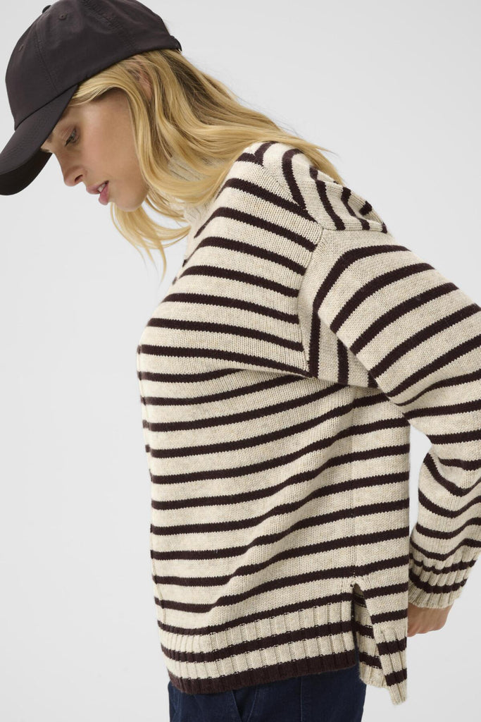 Experience cozy elegance with the LilyePW Pullover, now available in two rich new shades: Ganache Brown and French Oak Melange with Ganache Brown stripes. This knit pullover blends warmth and style effortlessly, making it your go-to piece for cooler days. Its classic colors and subtle stripe detail add versatile charm, perfect for elevating any casual look while keeping you comfortably snug. Enhance your wardrobe with a pullover that balances timeless design and everyday comfort.