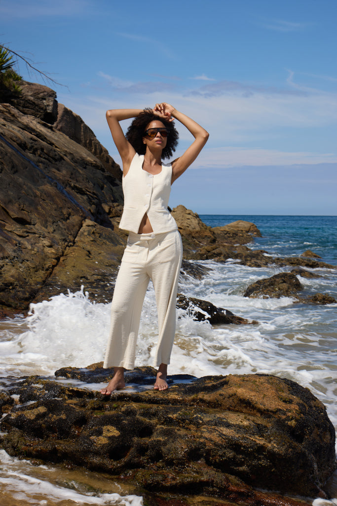Elevate your wardrobe with these IhKate Lumina Pants from Ichi, crafted in a soft Almond Milk tone. The wide leg silhouette offers a relaxed, contemporary fit, while the cropped length keeps the look modern and versatile. Perfect for pairing with trainers for casual days or dressing up with heels for evening occasions. A timeless piece that transitions effortlessly from season to season.