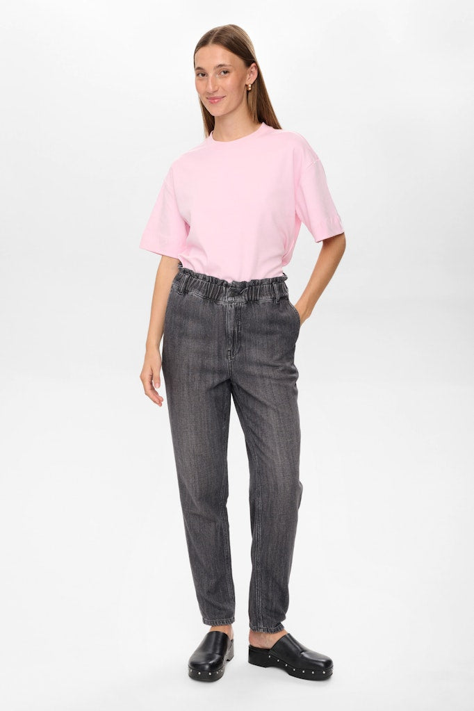 Elevate your casual wardrobe with the NuSeoul Paperbag Jeans in medium grey denim. Designed with a flattering paperbag waist, these jeans offer both style and comfort, cinching your silhouette for a chic, tailored look. The versatile grey wash pairs effortlessly with any top, making them perfect for day-to-night wear. Experience a modern twist on classic denim that enhances your shape while providing all-day ease.