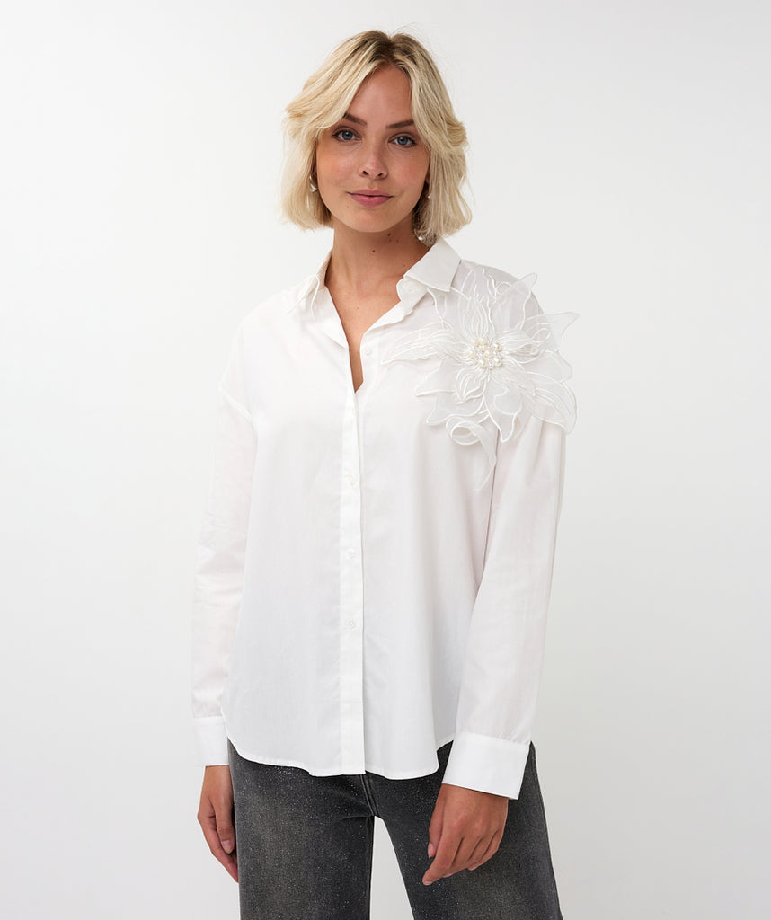 Elevate your everyday wardrobe with the Flower Patch Blouse in Off White from Esqualo. This beautifully crafted piece features delicate floral detailing that adds a touch of feminine elegance to any outfit. The soft off-white tone is versatile enough to pair with your favourite jeans, skirts, or tailored trousers, making it a wardrobe essential for both casual and dressed-up occasions. Crafted with quality in mind, this blouse offers comfort and style that will have you reaching for it again and again.