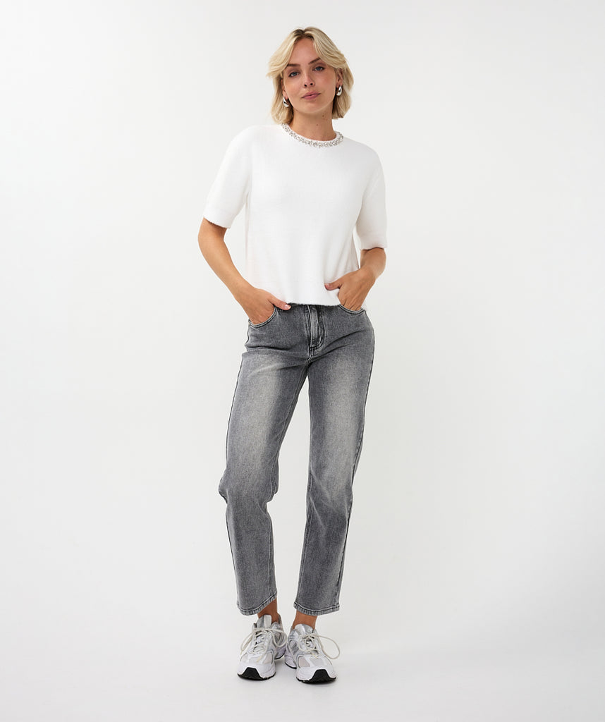 Elevate your wardrobe with this elegant sweater featuring a stunning sequin-embellished neckline. Available in classic black or sophisticated off-white, it adds a touch of sparkle to any outfit while keeping you cozy and stylish. Perfect for dressing up casual looks or adding shimmer to evening wear.