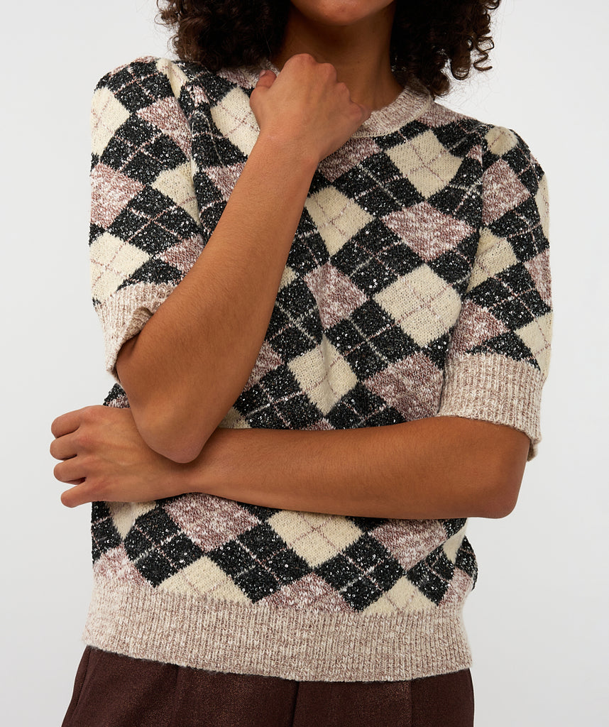 07717 short sleeve Argyle Sweater